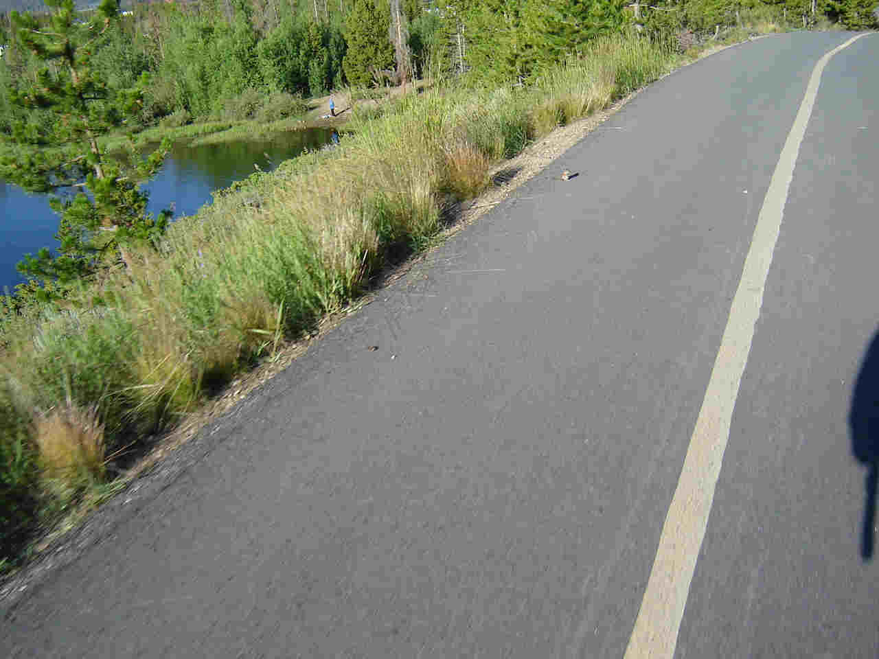 We decided to take the bike path up from Dillon to Breckenridge, We had a number of different folks tell us that they didn't think Rt 9 was safe because the volume and lack of shoulder. We go on the bike path easy enough but once we passed through Fresco, we began lost because of the number of bike paths and residential areas we went through. After asking the 4th person for directions my frustration level was such that I was ready to get on Rt 9. This was a nice bike path, it just really needed better signage. One of the cool things along the way we kept seeing were lots and lots of very tiny chipmunks. They were about 1/2 the size of the ones we normally see. James noticed that his bike was making