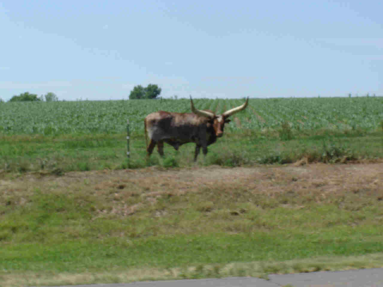 We wanted to take advantage of the slight tail wind before it turned into a head wind. In the first 3 hrs we traveled over 60+ miles which gave an average speed of 20.3 mph. That is pretty good!! Shortly there after the wind shifted. Additionally the flat road turned into slight "rollers" which slowed us down. The real killer was the heat and the humidity. It really saps your strength. About twenty miles into the ride we crossed into