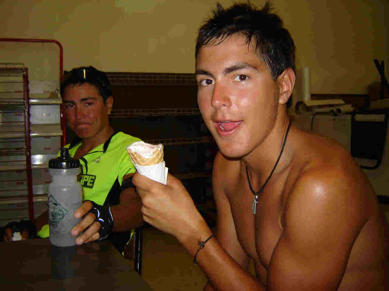 Kids at heart....squirting each other with their water bottles!! That's