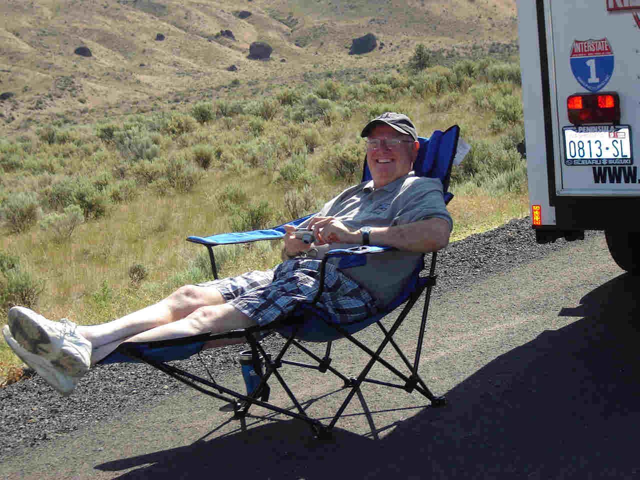 laying in his lounge chair while we bike up this 5 mile, 12% grade hill.