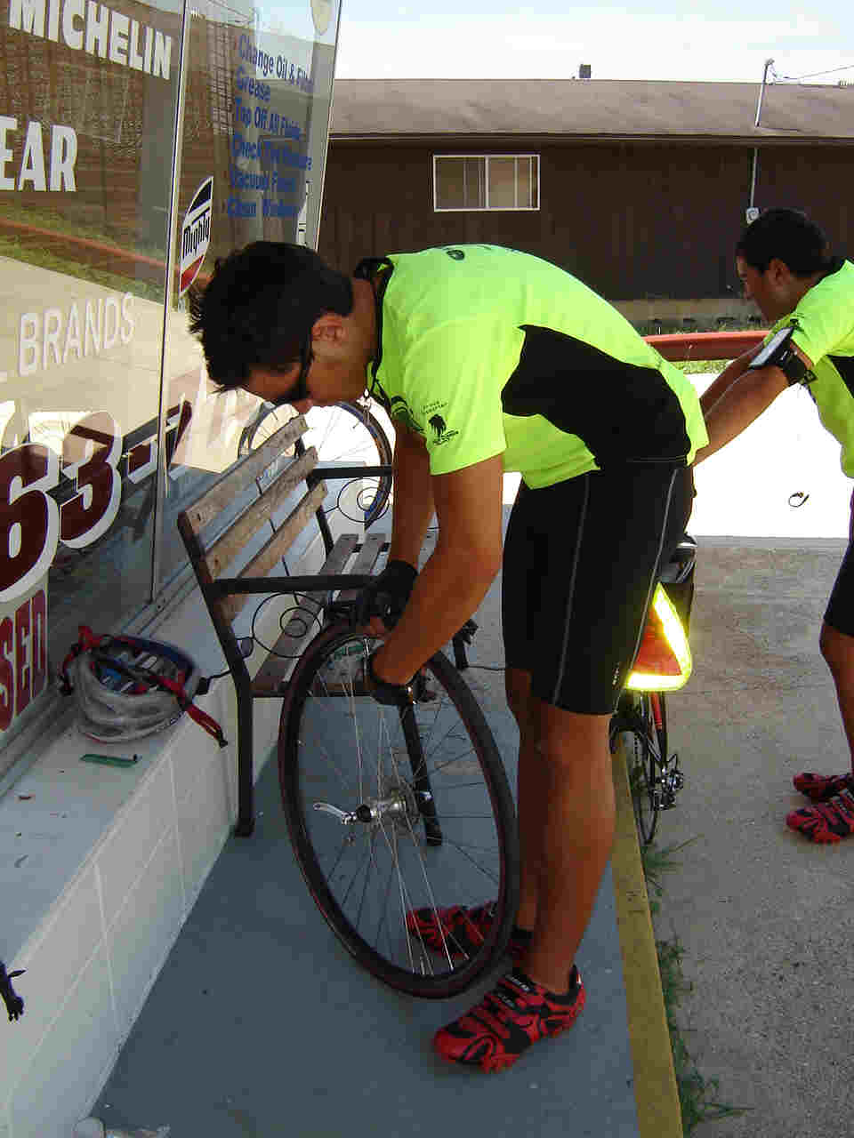 discovered he had a flat rear tire. So that is number four for him. He found a