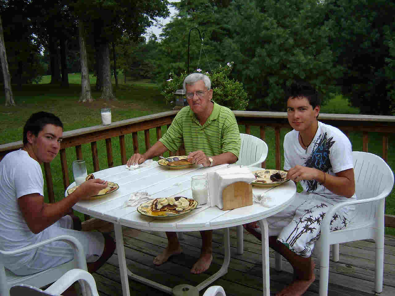 A pancake breakfast out on John's balcony over looking the golf course.