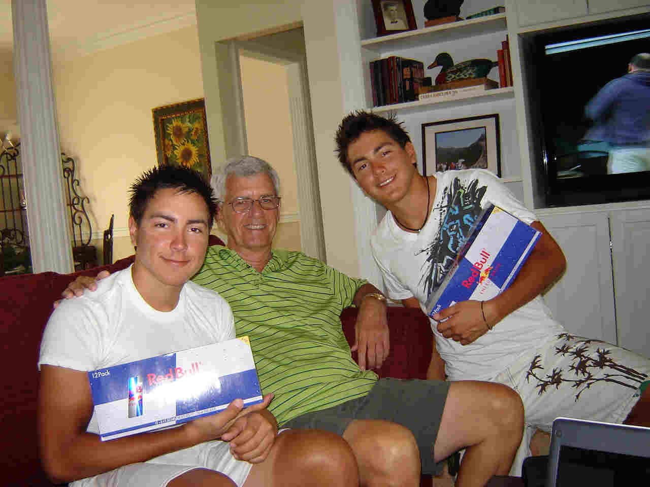 John's B Day gift to the boys -- a case of Red Bull!!