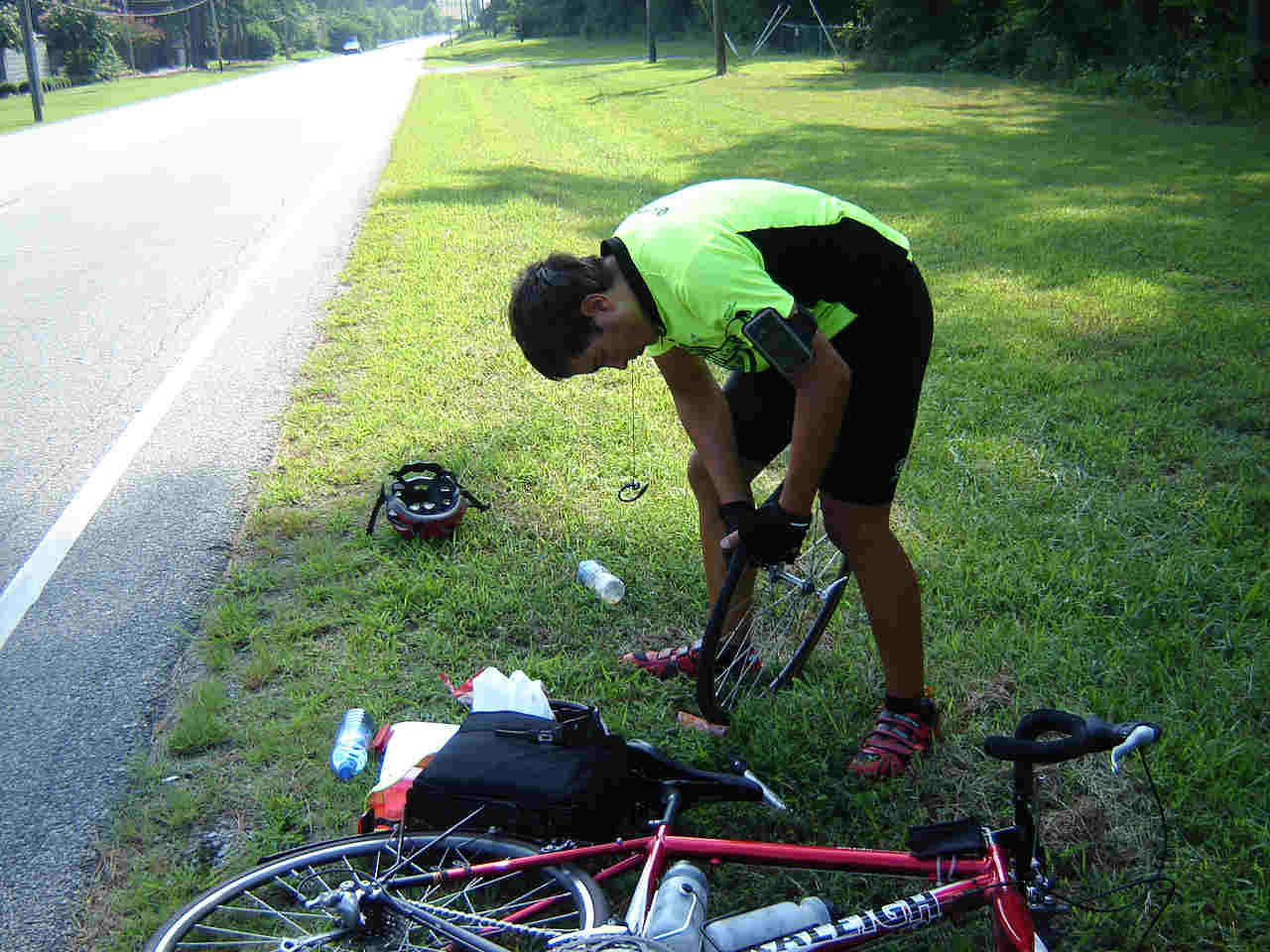 Suffolk, James got his first flat tire for the entire ride. Not bad considering