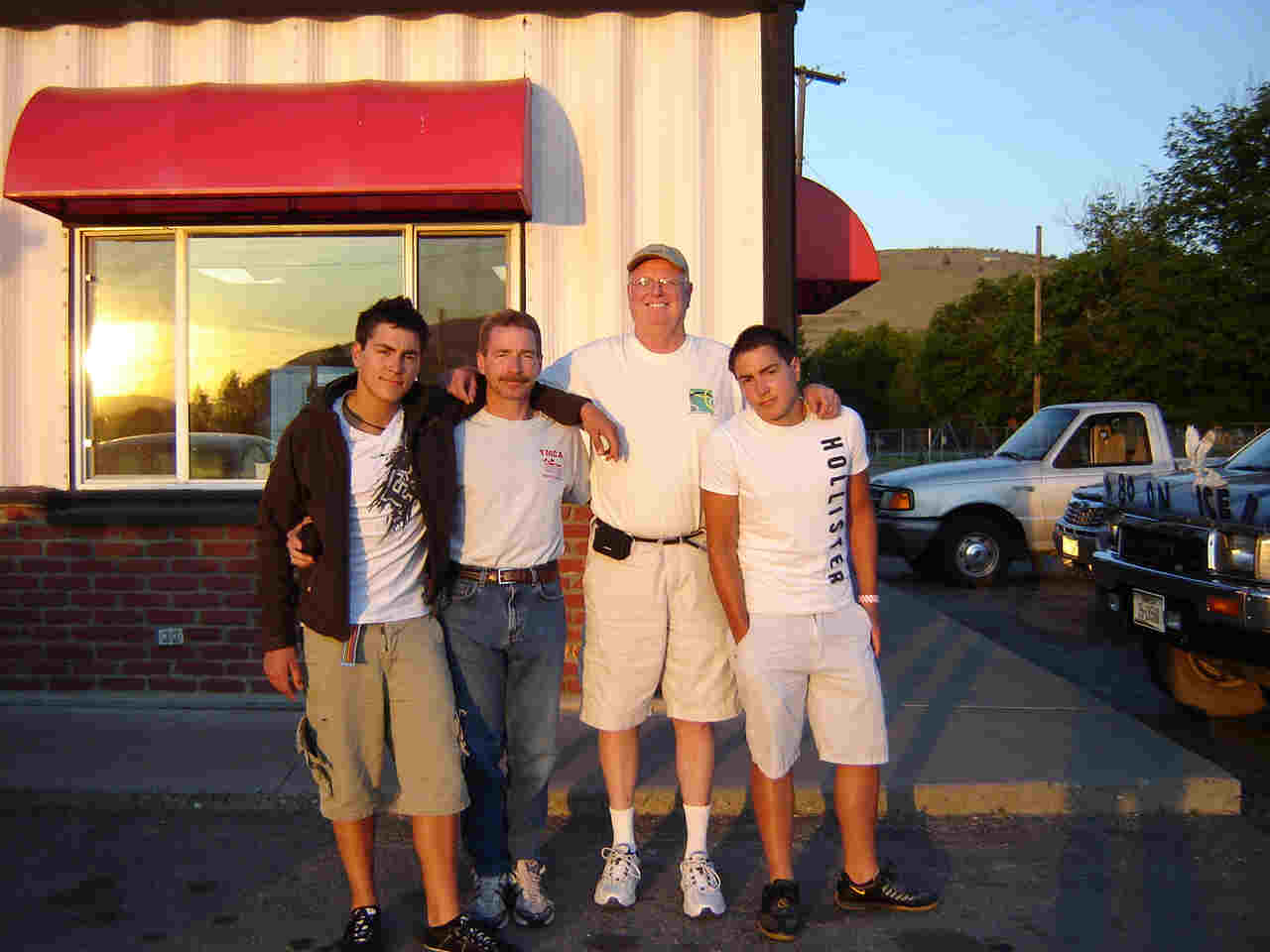 Click here for Garmin ride data (This is cool if you like lots of data! It may take a few seconds to load but you can hit play and time compress our ride) DAILY REPORT: David, John, James and Skip. This is our rest day. Sunny and hot. Expected temp in around 95 deg. We slept in till 1130 this morning. We needed (and deserved) rest. Hung out at the hot spring pull and Jacuzzi. We also did some laundry - Mom would be proud. The boys even folded their own clothes!! In the afternoon Skip and the boys played some Texas Hold'm. Dad repaired his biking shoes with shoe goo. I noticed they were starting to separate at the toe. Not good if they have another 2500 miles to go. Tonight we headed into town for some burgers and watch the fireworks in the town of Plains. We stopped at a little burger joint called the Crystal and they had the best milk shakes! If you pass thru Plains you definetly want to stop by for one. Then we headed over to the Fairgrounds to watch the fireworks. The "kids" area was a war zone!! I have never seen/heard so many fireworks before (with the exception of Hawaii on New Years eve! Those who have lived in Hawaii know what I mean.) It was just unbelievable the amount of ordnance that was brought to shoot out over the South Forks River. WOW!! The folks in Plains really know how to celebrate the 4th of July!! Thanks for joining us.....ride safely!! Happy 4th of July!! The Riding4Hope Team (David, John, James & Skip)
